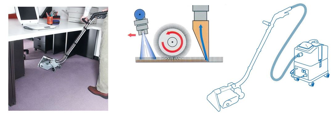 - Die mechanische Wirkung der rotierenden, zylindrischen Bürste entfernt den Schmutz bis zur Basis der Teppichfasern und sorgt dafür, dass jede Faser gründlich gereinigt wird. Wenn Schmutzreste an der Basis der Fasern verbleiben, kommen sie nach kurzer Zeit wieder an der Oberfläche zum Vorschein.