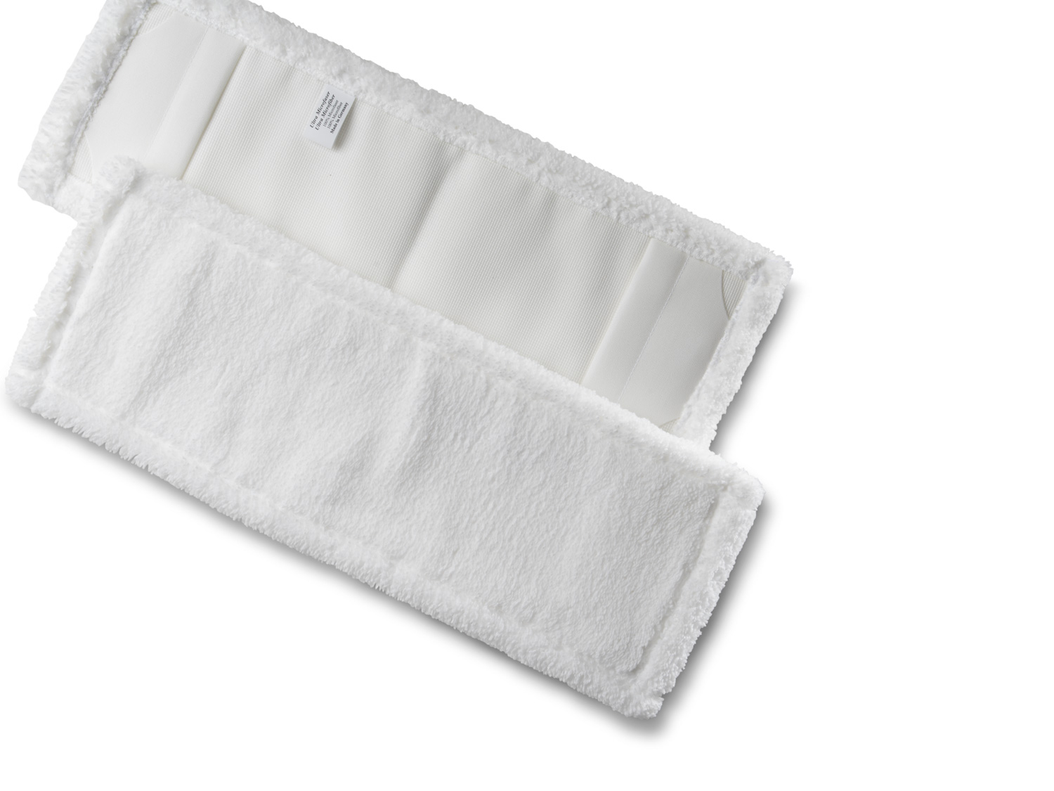 Universal Taschenmopp aus weißem Microplüsch für glatte Oberflächen, Langflor.