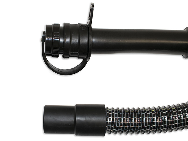 Merkmale: -Saugschlauch mit Gewebeverstärkung -Muffe oder Quetschtülle mit Deckel -Endstutzen