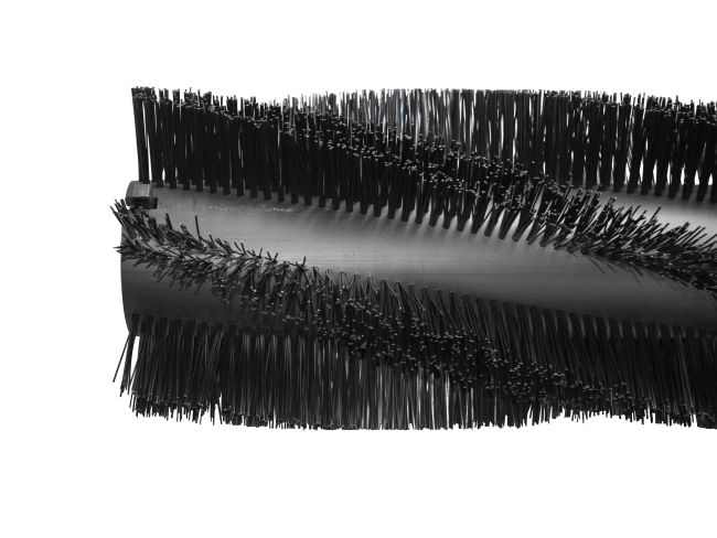 Der Spiralbesatz sorgt dafür, dass ständig ein Teil der Walze in Kontakt mit dem Boden ist – dadurch wird der Schmutz gleichmäßig und ohne Ruckeln aufgenommen.