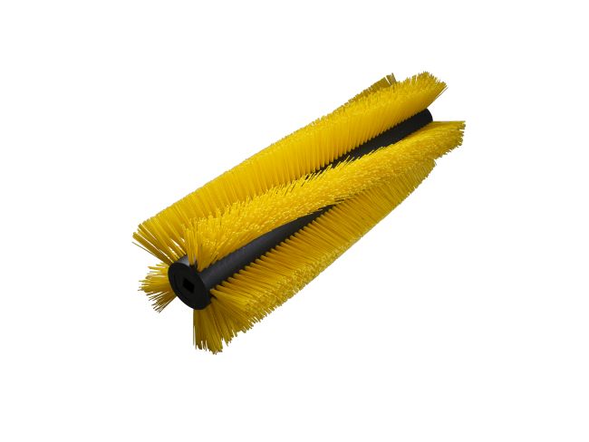 Der Spiralbesatz sorgt dafür, dass ständig ein Teil der Walze in Kontakt mit dem Boden ist – dadurch wird der Schmutz gleichmäßig und ohne Ruckeln aufgenommen.
