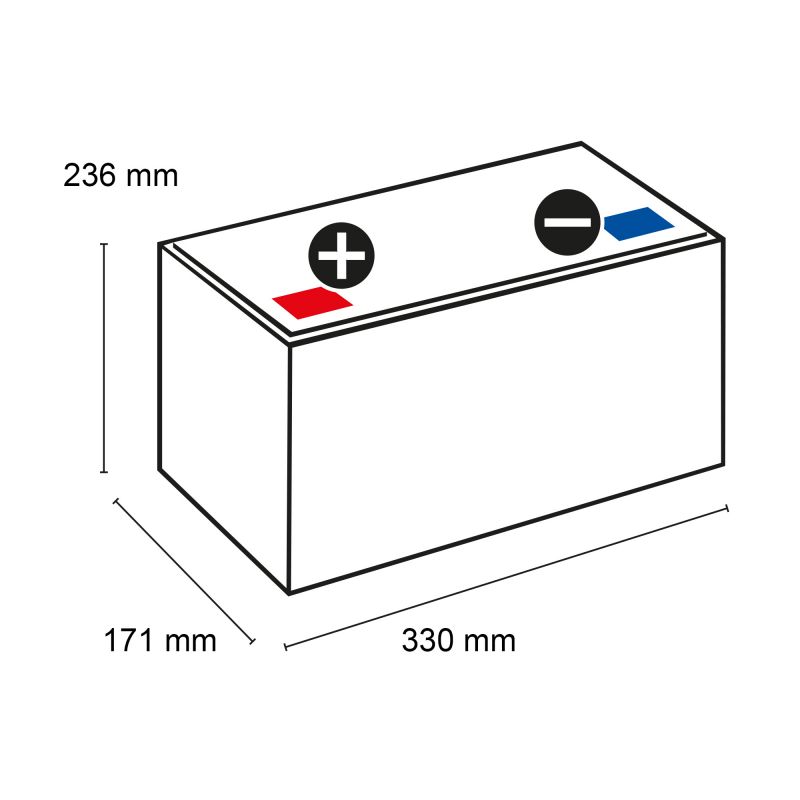 Länge: 330 mm Breite: 171 mm Höhe: 236 mm Kapazität: 76 Ah