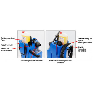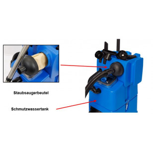 Die Umschaltung zwischen Sprüh-Extraktionsreinigung und Staubabsaugung ist sehr einfach und erfolgt durch entsprechendes Anschließen der Saugschläuche.