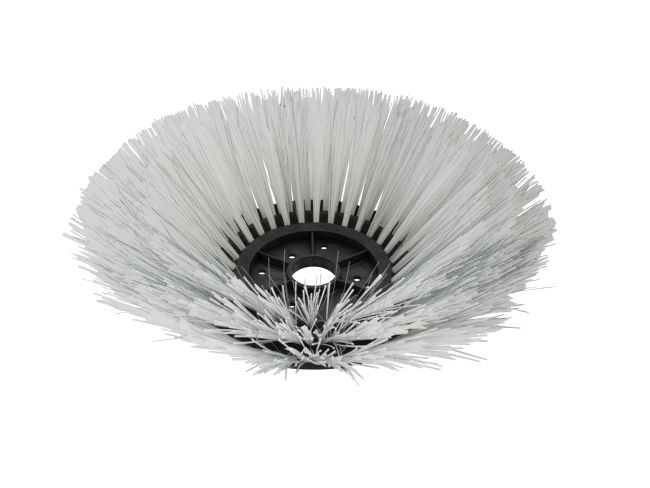 Der Seitenbesen mit einer gemischten Beborstung aus Kunststoff und Draht eignet sich ideal zum Lösen und Aufkehren von feuchtem Kehrgut.